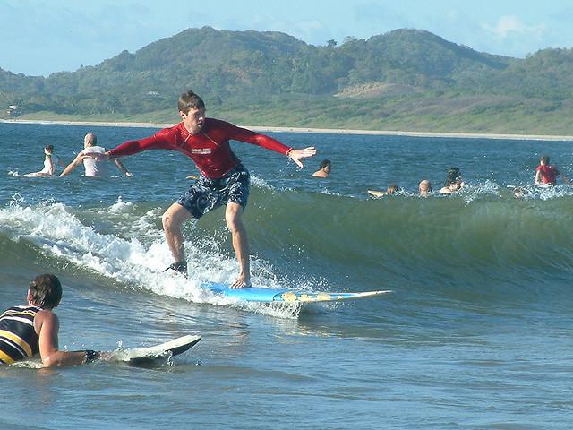 instructors who are extremely efficient and experienced. The shop offers private and group lessons. The group lessons include 4 students per instructor. Four 2 hours lessons are held daily at 9 am, 11 am, 1 pm and 3 pm. During the classes, students are provided with a rash guard, locker and soft-top surfboard. Beginners will be first taught about ocean safety and surf etiquette on the beach before entering the water. Iguana Surf Shop and Tours guarantees that you will be riding the waves perfectly after all the lessons.